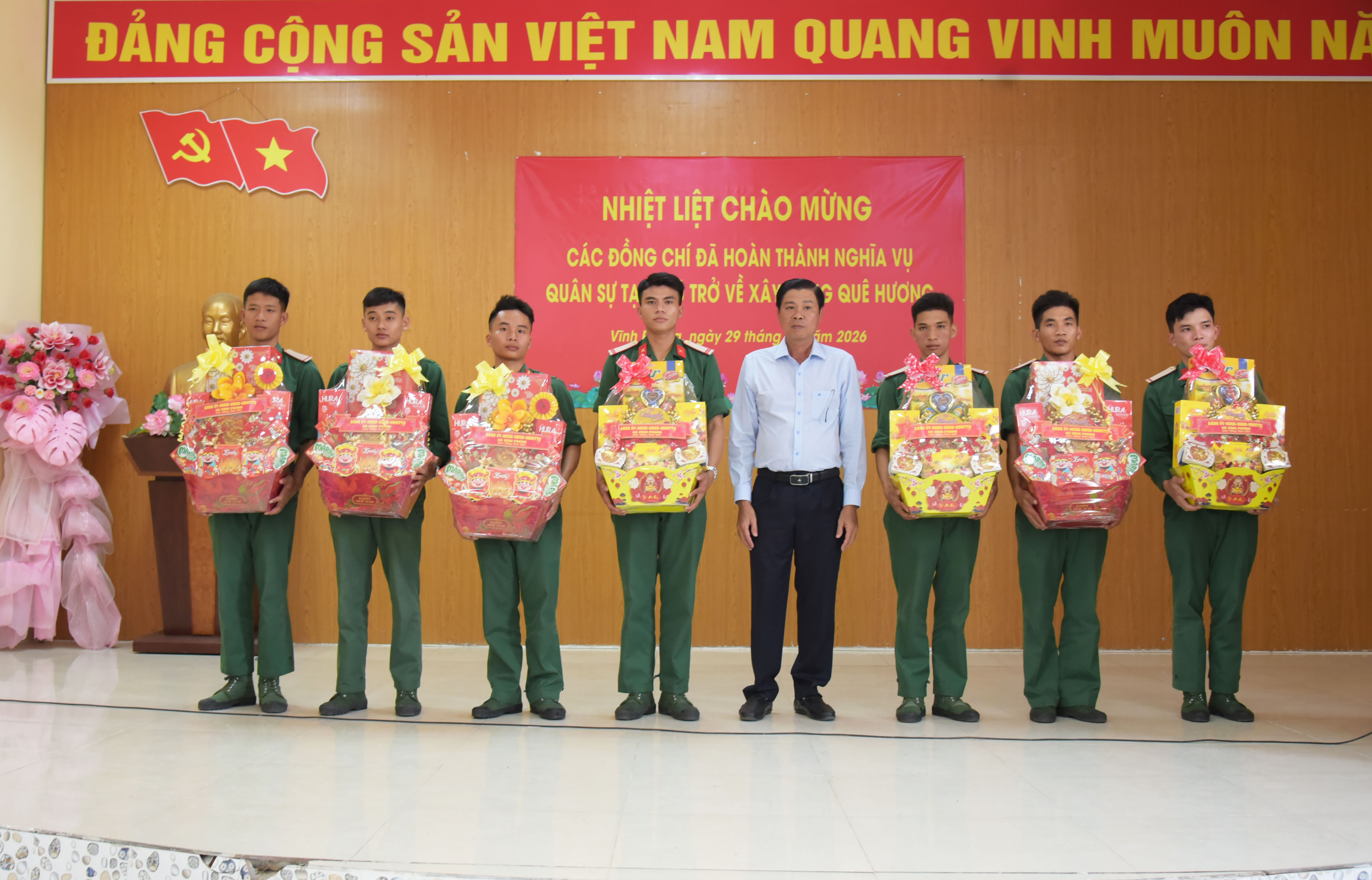 Chiều 29/1, Ban Chỉ huy Quân sự xã Vĩnh Phong tổ chức tiếp nhận quân nhân xuất ngũ trở về địa phương năm 2026. Dự có đồng chí Nguyễn Chí Thanh, Bí thư Đảng ủy xã, đồng chí Huỳnh Quốc Huy, Phó Bí thư Đảng ủy, Chủ tịch UBND xã, đồng chí Trần Sông Hồng, Ủy viên Ban Thường vụ Đảng ủy, Chủ tịch Ủy ban MTTQ Việt Nam xã; Thiếu tá Huỳnh Văn Vĩnh Phúc - Chỉ huy trưởng Ban Chỉ huy Quân sự xã Vĩnh Phong.
