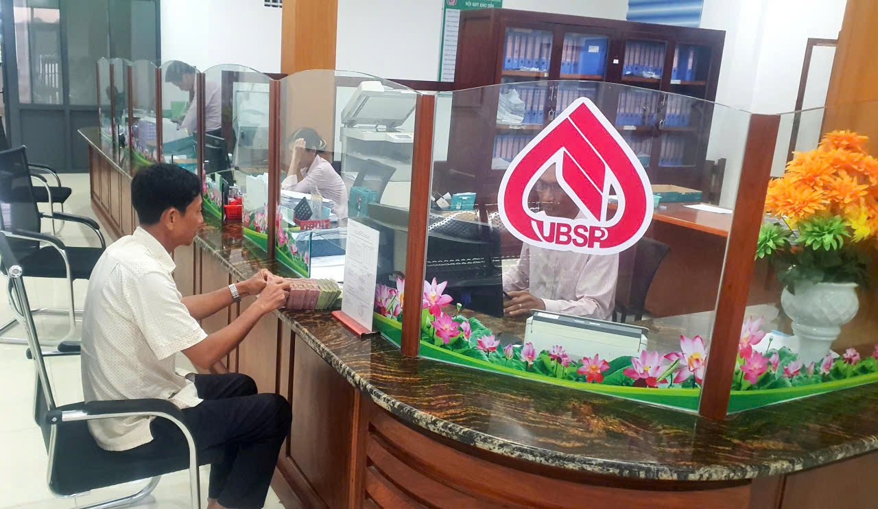 Ảnh: Giao dịch viên của NHCSXH Vĩnh Thuận giải ngân cho khách hàng