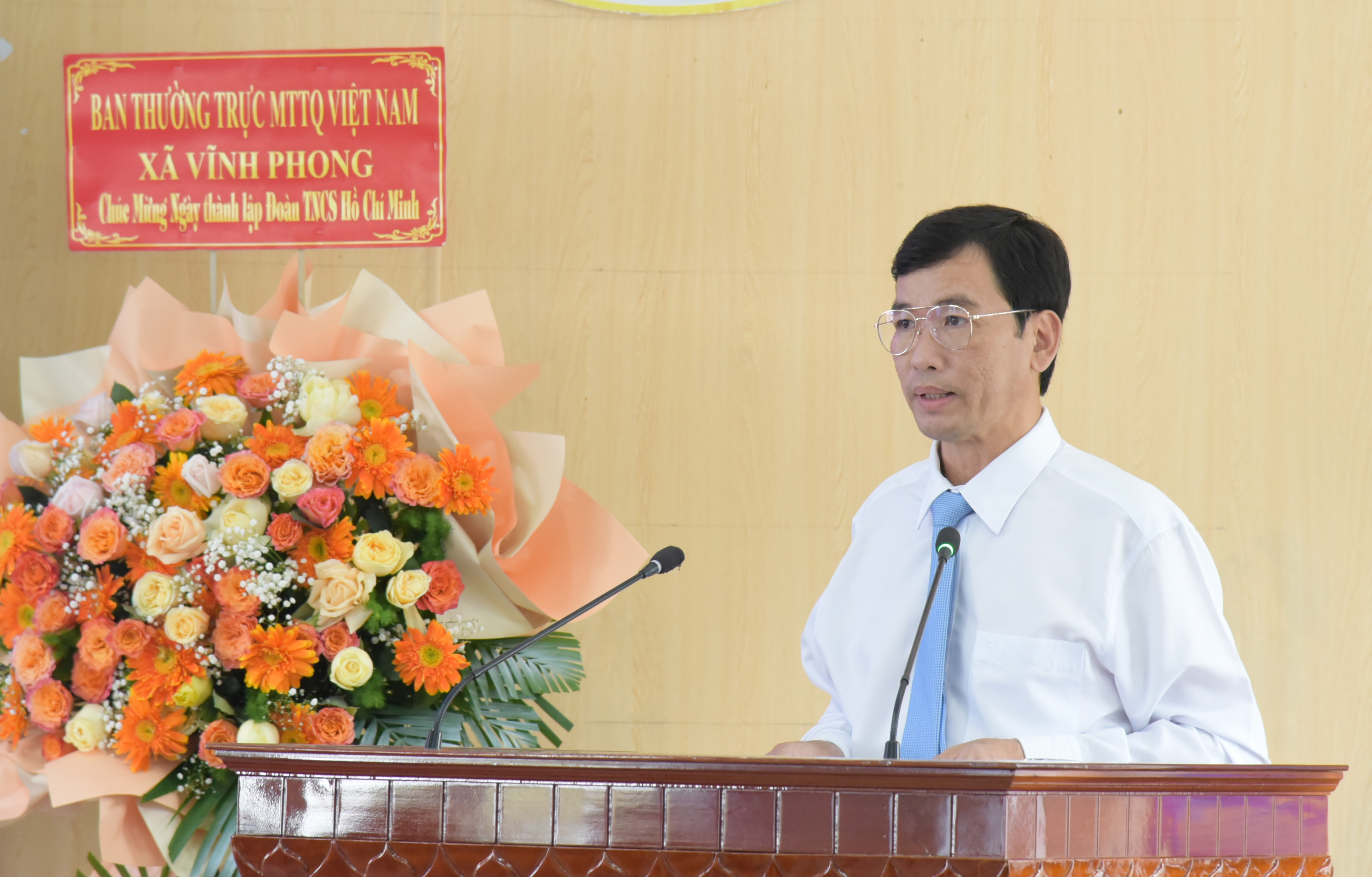 Chiều 26/3, Ban Thường vụ Đoàn xã Vĩnh Phong long trọng tổ chức Họp mặt kỷ niệm 95 năm Ngày thành lập Đoàn thanh niên Cộng sản Hồ Chí Minh (26/3/1931 – 26/3/2026). Tham dự buổi họp mặt có đồng chí Trần Văn Thanh Hà – Phó Bí thư Thường trực Đảng ủy, Chủ tịch HĐND xã, đồng chí Châu Ngọc Cẩn - UVBTV, Phó Chủ tịch UBND xã, đồng chí Trần Sông Hồng - UVBTV, Chủ tịch Ủy ban MTTQ Việt Nam xã Vĩnh Phong, cùng các đồng chí nguyên là cán bộ Đoàn qua các nhiệm kỳ.