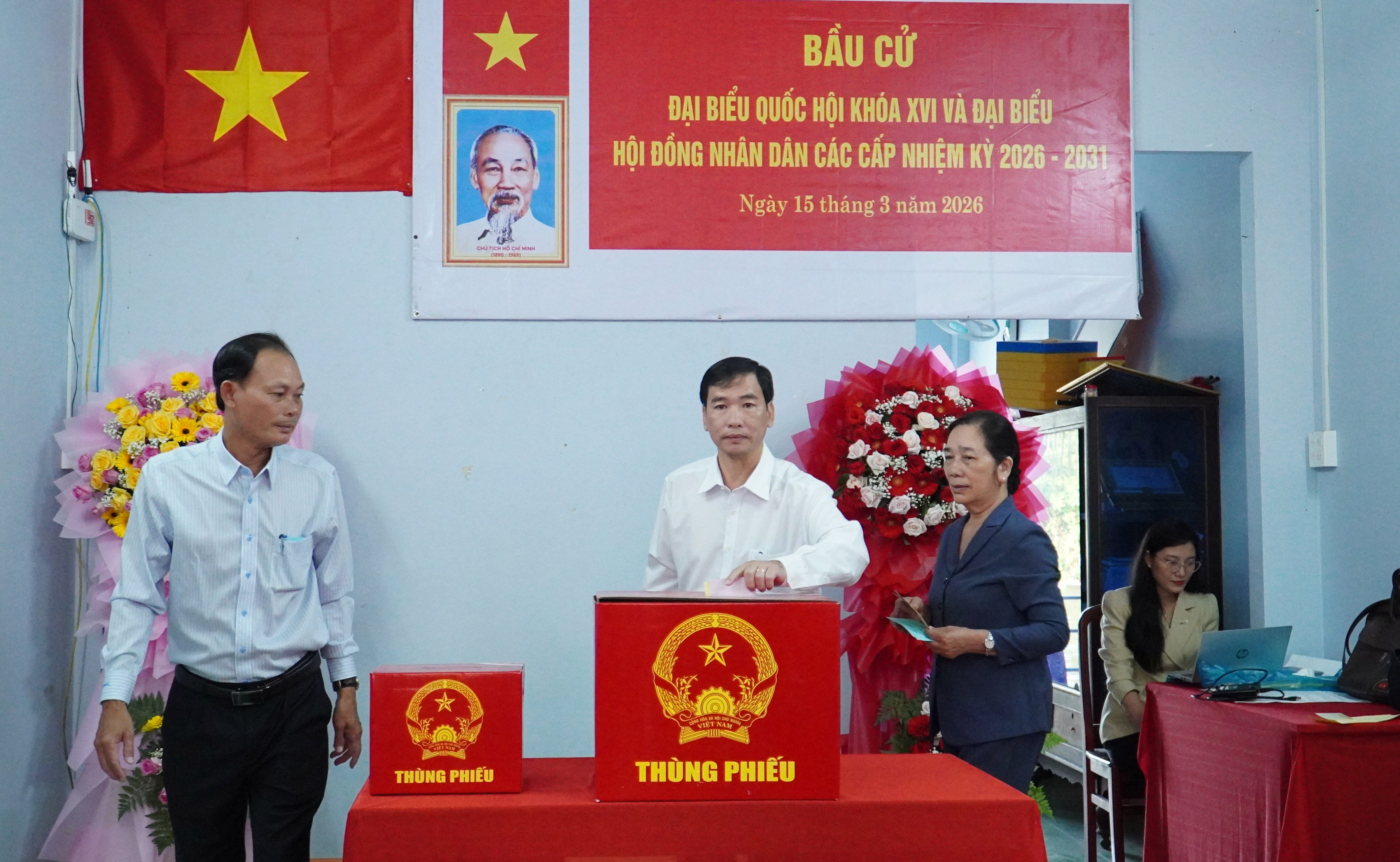 (Ông Đỗ Thanh Bình - Ủy viên Ban Chấp hành Trung ương Đảng, Bộ trưởng Bộ Nội vụ, Phó Trưởng Ban Tổ chức Trung ương, Uỷ viên Hội đồng Bầu cử quốc gia bỏ phiếu bầu ĐBQH khóa XVI và đại biểu HĐND các cấp nhiệm kỳ 2026-2031)