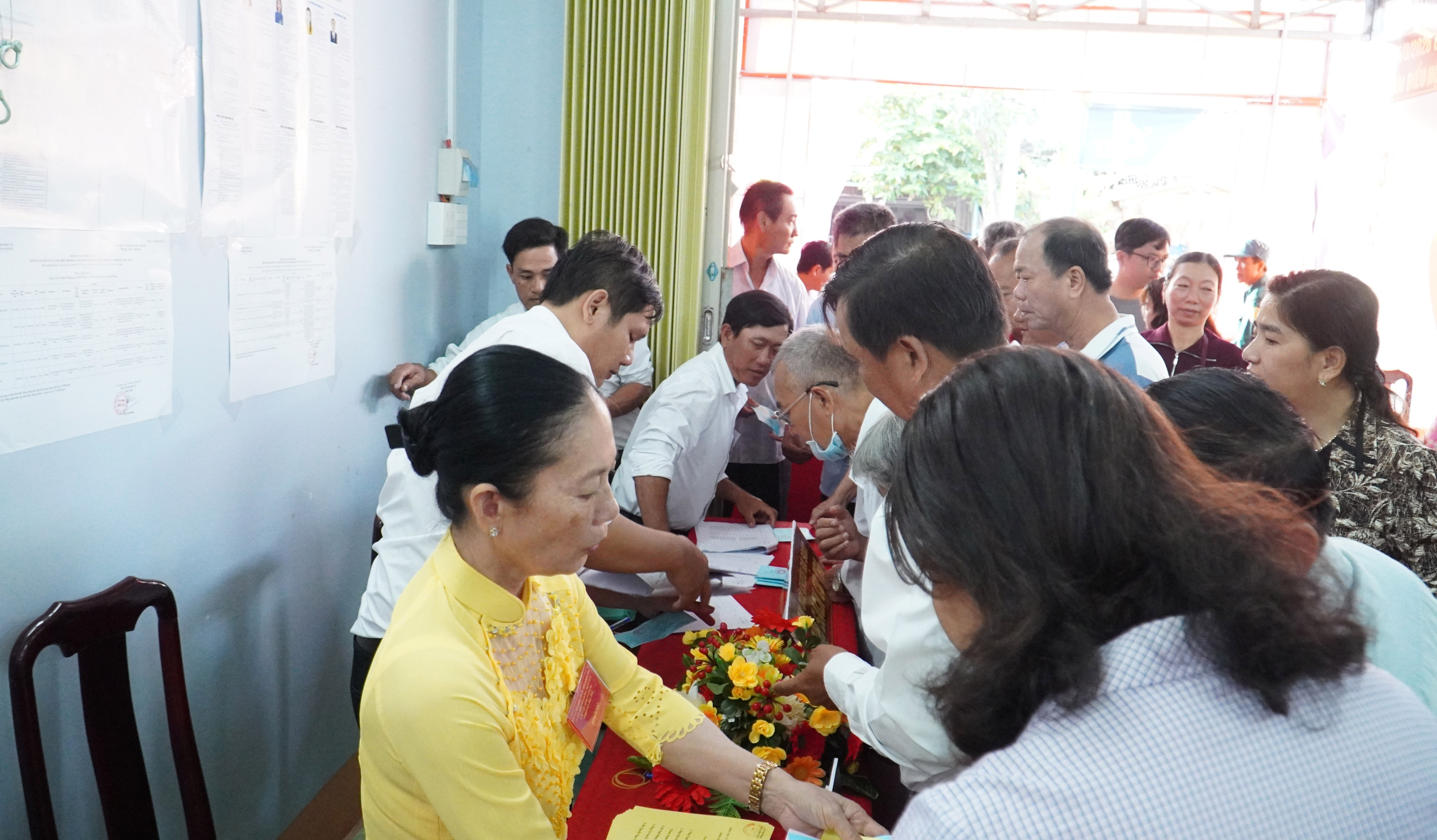 Toàn xã có 22 khu vực bỏ phiếu, phục vụ gần 30 nghìn cử tri tham gia bầu cử. Ngay sau lễ khai mạc, nhiều cử tri đã xếp hàng ngay ngắn, nghiêm túc thực hiện các bước theo quy định trước khi bỏ lá phiếu của mình vào thùng phiếu. Trên gương mặt mỗi người đều thể hiện niềm vui, sự phấn khởi và tinh thần trách nhiệm đối với việc lựa chọn những đại biểu tiêu biểu đại diện cho ý chí, nguyện vọng của nhân dân. Chú Đặng Văn Đậm, Cử tri ấp Cạnh Đền, xã Vĩnh Phong, tỉnh An Giang chia sẻ thêm “Việc bố trí chỗ bầu cử rất chu đáo, người dân đến bỏ phiếu theo thứ tự, không khí bầu cử rất rộn ràng và náo nức”
