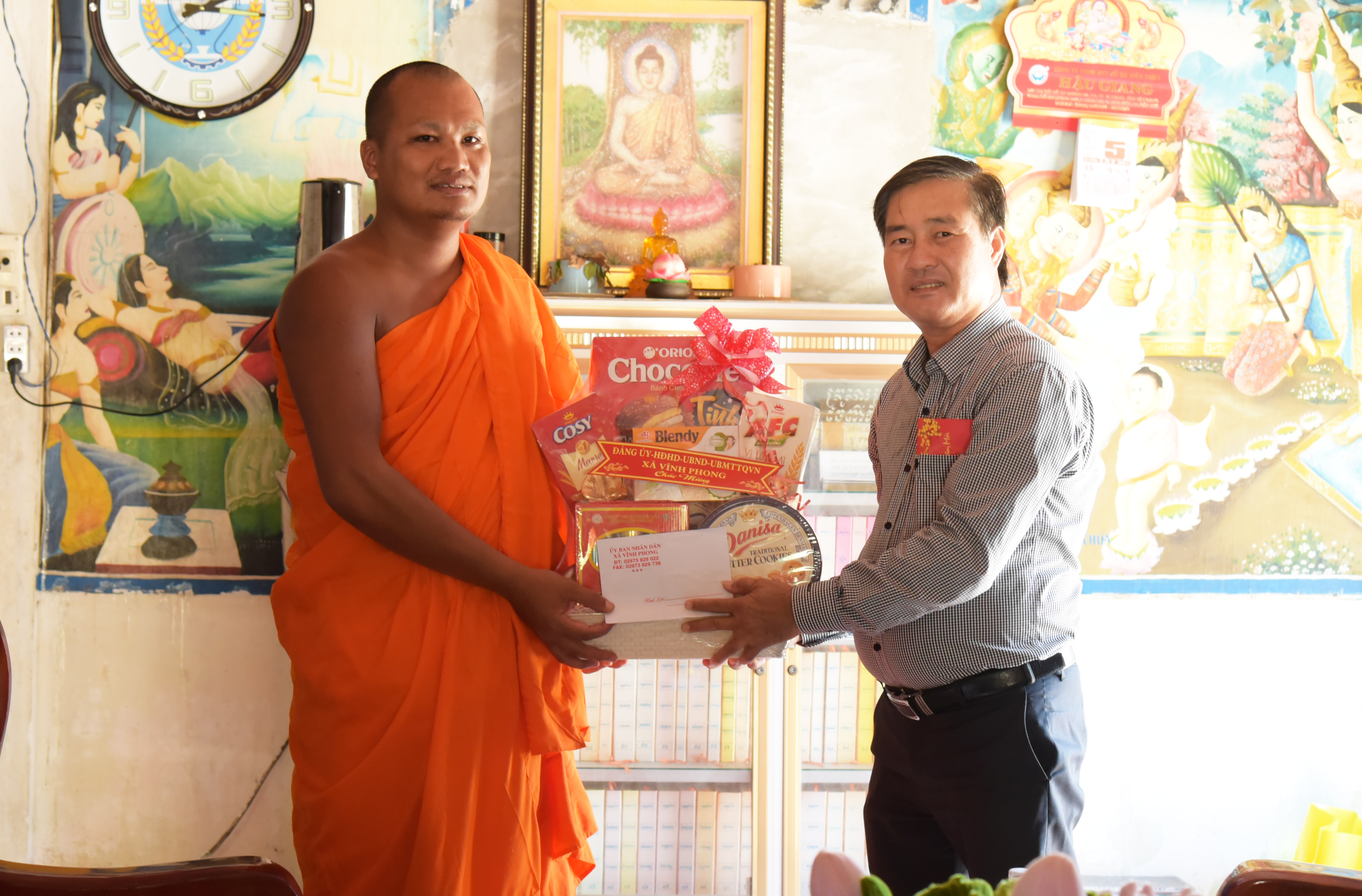 Nhân dịp Tết Chôl Chnăm Thmây của đồng bào dân tộc Khmer, Đoàn lãnh đạo xã Vĩnh Phong do đồng chí Nguyễn Minh Vũ, Phó chủ tịch HĐND xã làm trưởng đoàn đã đến thăm, chúc Tết chùa Chắc Băng Cũ và bà con đồng bào Khmer tiêu biểu tại đây.