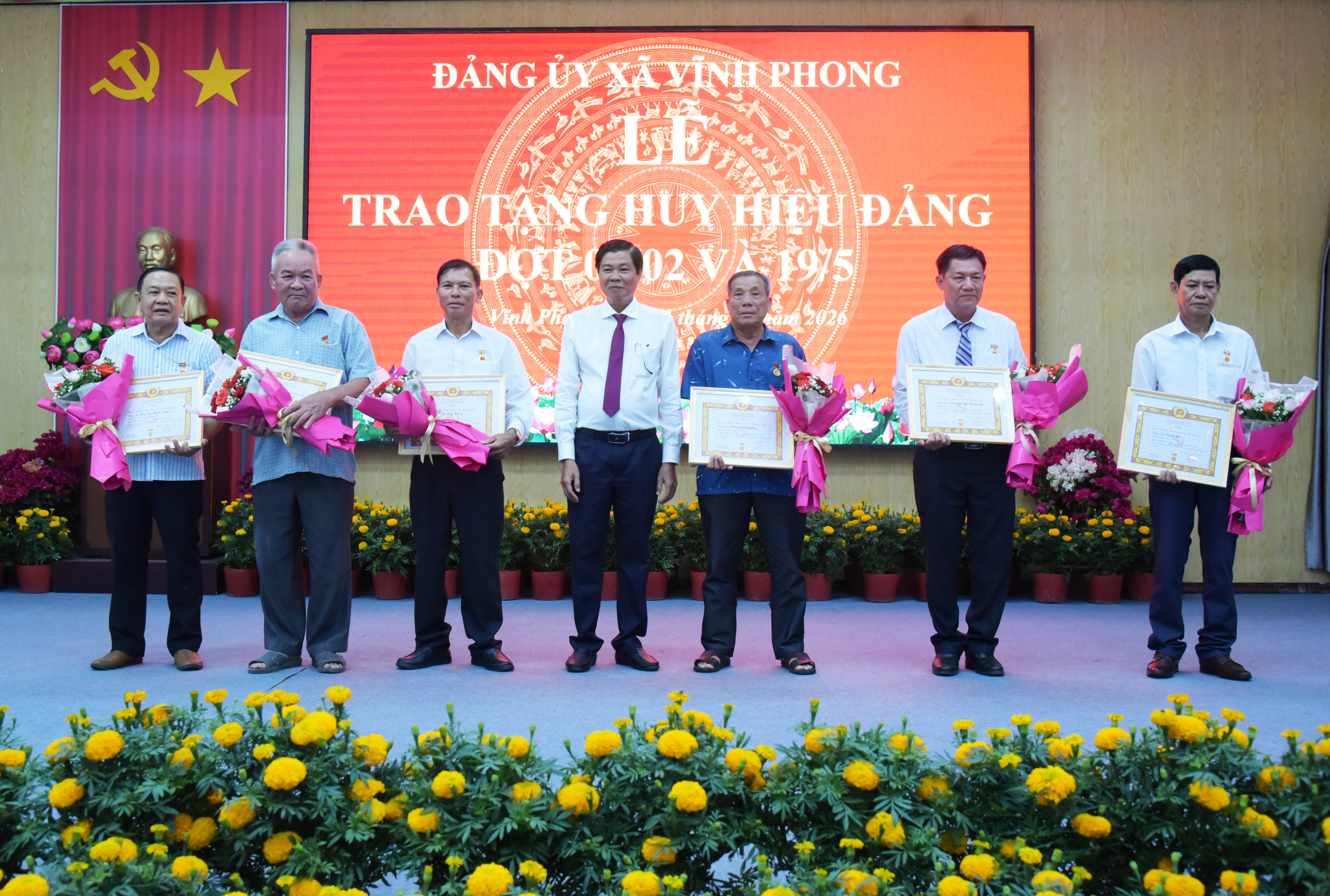Theo đó, đợt trao tặng huy hiệu Đảng 3/2, xã Vĩnh Phong có 11 đảng viên được nhận; trong đó có 1 đảng viên 60 năm tuổi Đảng; 1 đảng viên 55 năm tuổi Đảng; 2 đảng viên 45 năm tuổi Đảng; 4 đảng viên 40 năm tuổi Đảng và 3 đảng viên 30 năm tuổi Đảng.